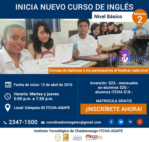 Horario: Martes y jueves de 5:00 p.m. a 7:30 p.m.Inversión: $23.- mensuales, $20.- para ex-alumnos y $18.- para estudiantes activos