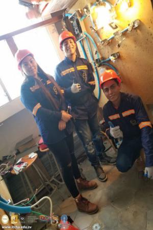 Estudiantes de primer año de la carrera Técnico en Ingeniería Eléctrica desarrollando clases prácticas el Módulo de Instalaciones Eléctricas Residenciales.