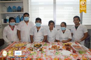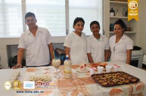 Estudiantes de la carrera Técnico en Agroindustria del Instituto Tecnológico de Chalatenango elaboran productos alimenticios derivados de la soya y del frijol en la evaluación final del módulo: Elaboración de Productos a Base de Soya y Frijol.